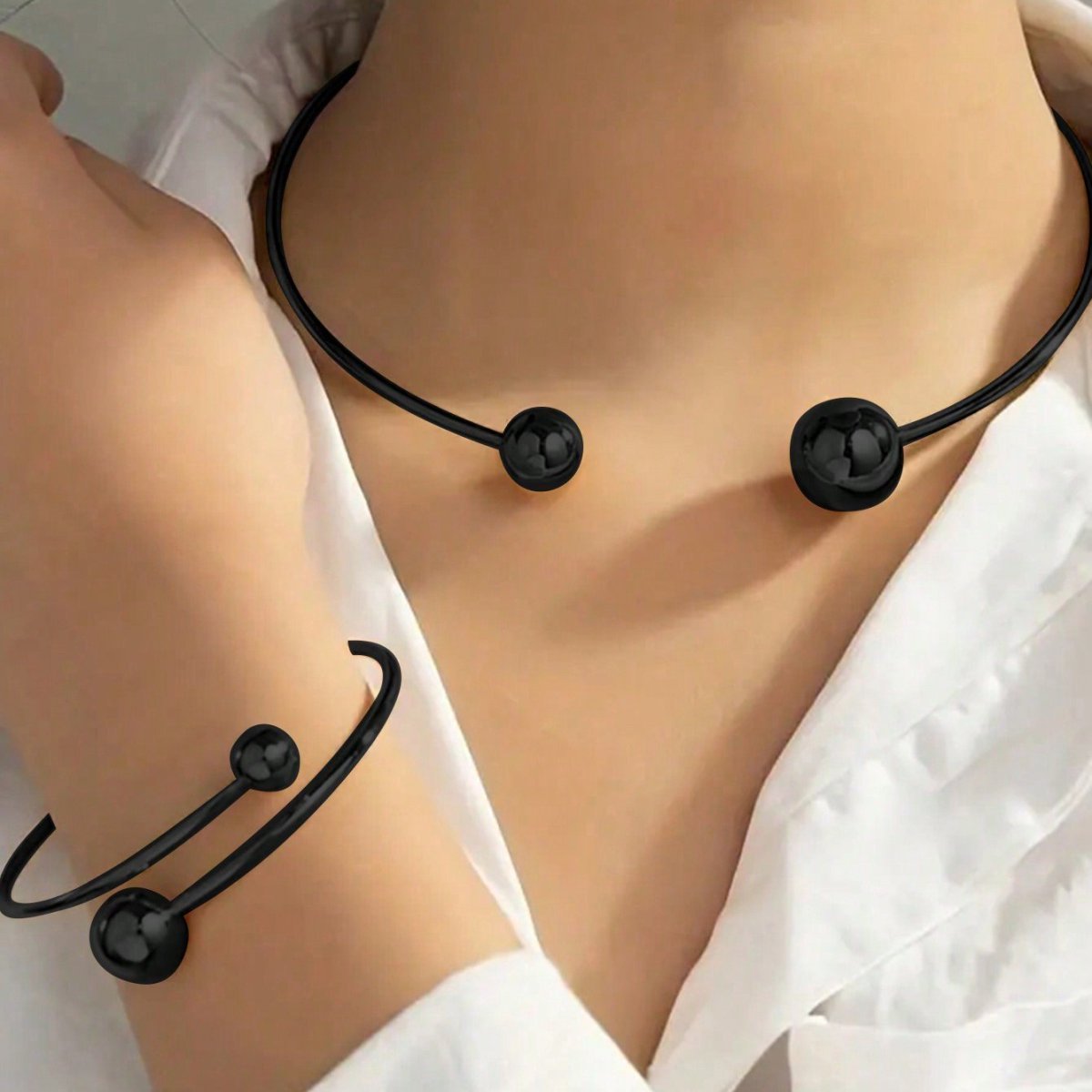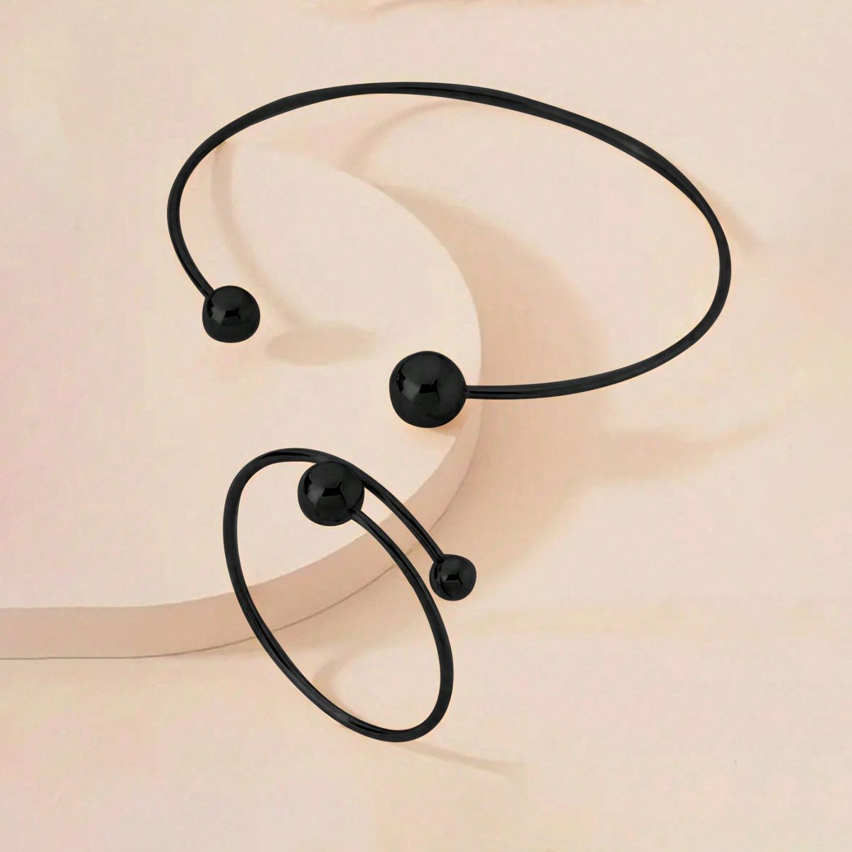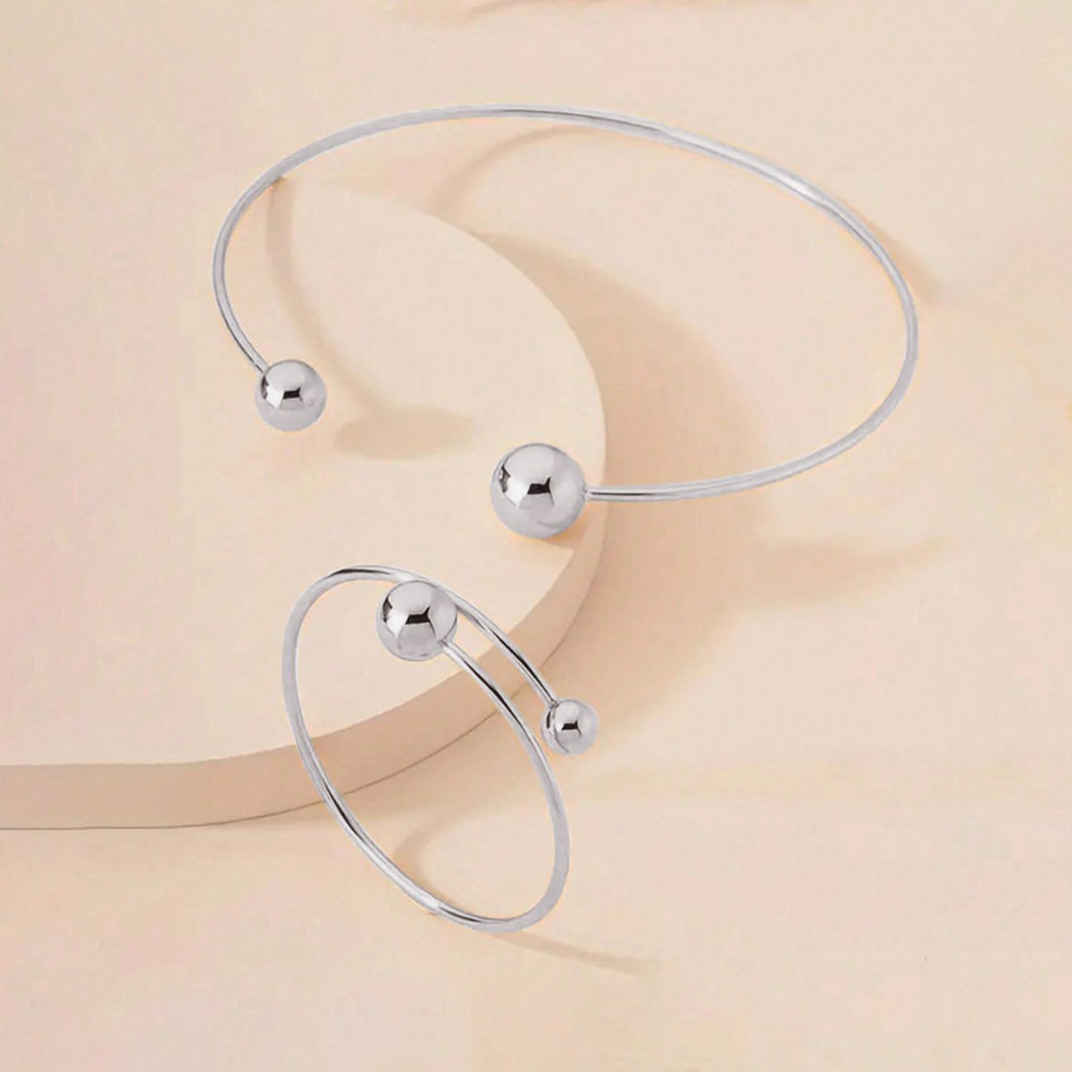 Material: High - quality 14K gold - plated metal Bracelet Sizes: One bracelet is adjustable from 13cm (5.12 inches) to 15cm (5.91 inches), and the other is adjustable from 6cm (2.36 inches) to 7cm (2.76 inches) Weight: Lightweight for comfortable wear Design: Features smooth, shiny gold balls as accents on the elegant bangle - style bracelets Use and Scenario Description: This stunning golden ball bracelet set is designed for those who appreciate delicate and stylish jewelry. The set is perfect for both casual and formal occasions. Whether you're going for a casual coffee date, attending a business meeting, or dressing up for a special event like a wedding or a gala, these bracelets will add a touch of sophistication to your look. Wearing Effect: When worn, the bracelets gracefully adorn your wrist, with the golden balls catching the light and creating a subtle, yet eye - catching sparkle. The adjustable feature ensures a perfect fit for different wrist sizes. The simple yet elegant design makes these bracelets versatile enough to be paired with a variety of outfits, from a simple white T - shirt and jeans to an elaborate evening gown. Use Feelings: The bracelets are lightweight and comfortable, allowing you to wear them all day without any discomfort. The smooth finish of the gold - plated metal feels gentle against the skin. Wearing this set makes you feel confident and elegant, as if you have a piece of the sun shining on your wrist.